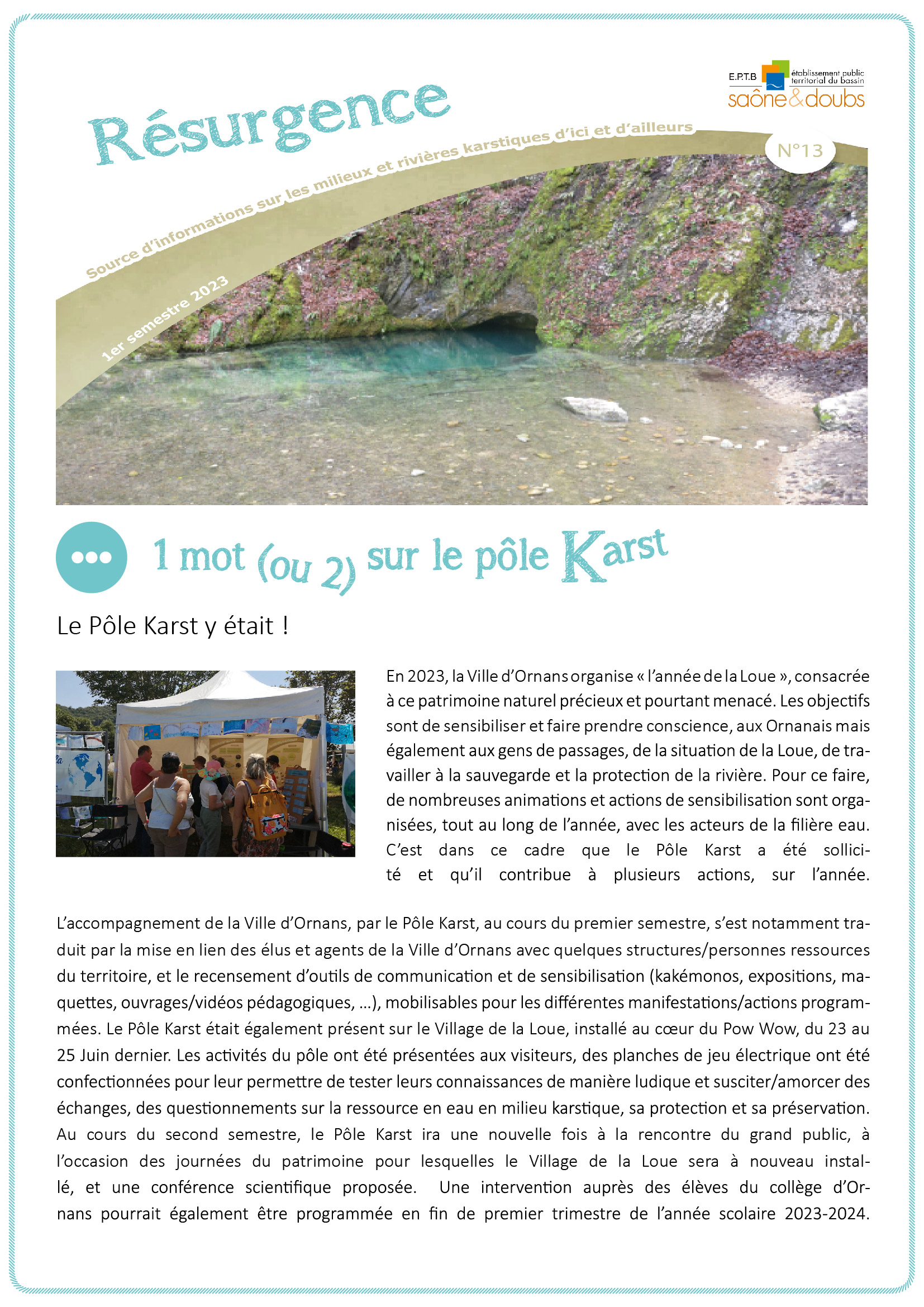Résurgence : Source d'informations sur les milieux et rivières karstiques d'ici et d'ailleurs (n°13, 1er semestre 2023)