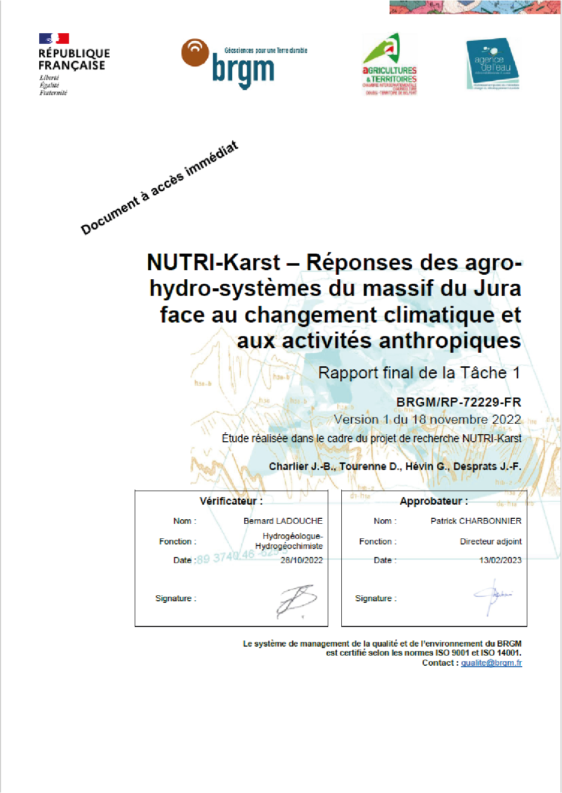 Thématique(s): Agronomie, agriculture..., Écologie, hydrobiologie, écotoxicologie..., Hydrogéologie, hydrologie, hydrochimie..., Karstologie, géomorphologie, géologie..., Patrimoine naturel, Risques naturels, mouvements de terrain...