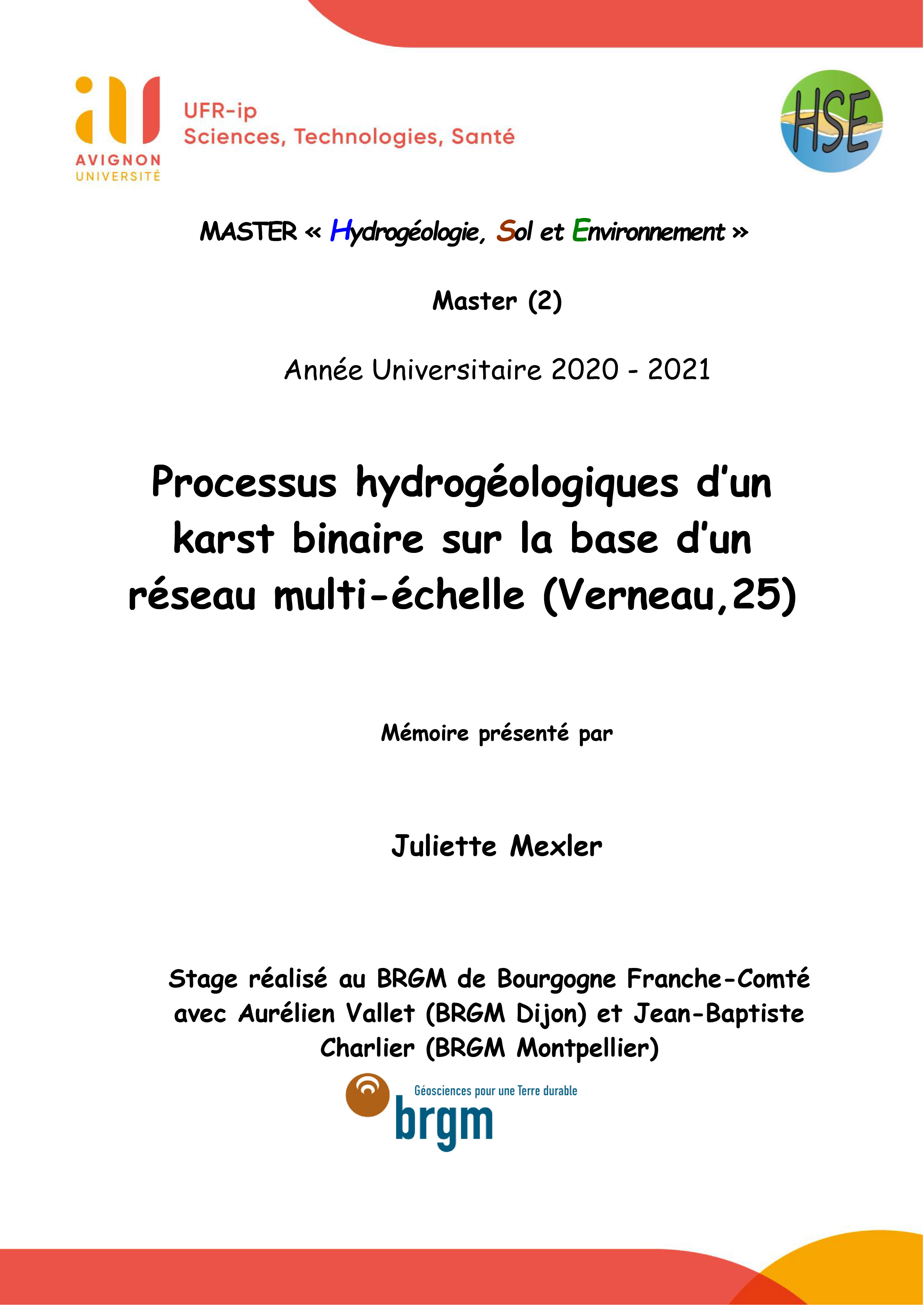 Rapport de MASTER « Hydrogéologie, Sol et Environnement »