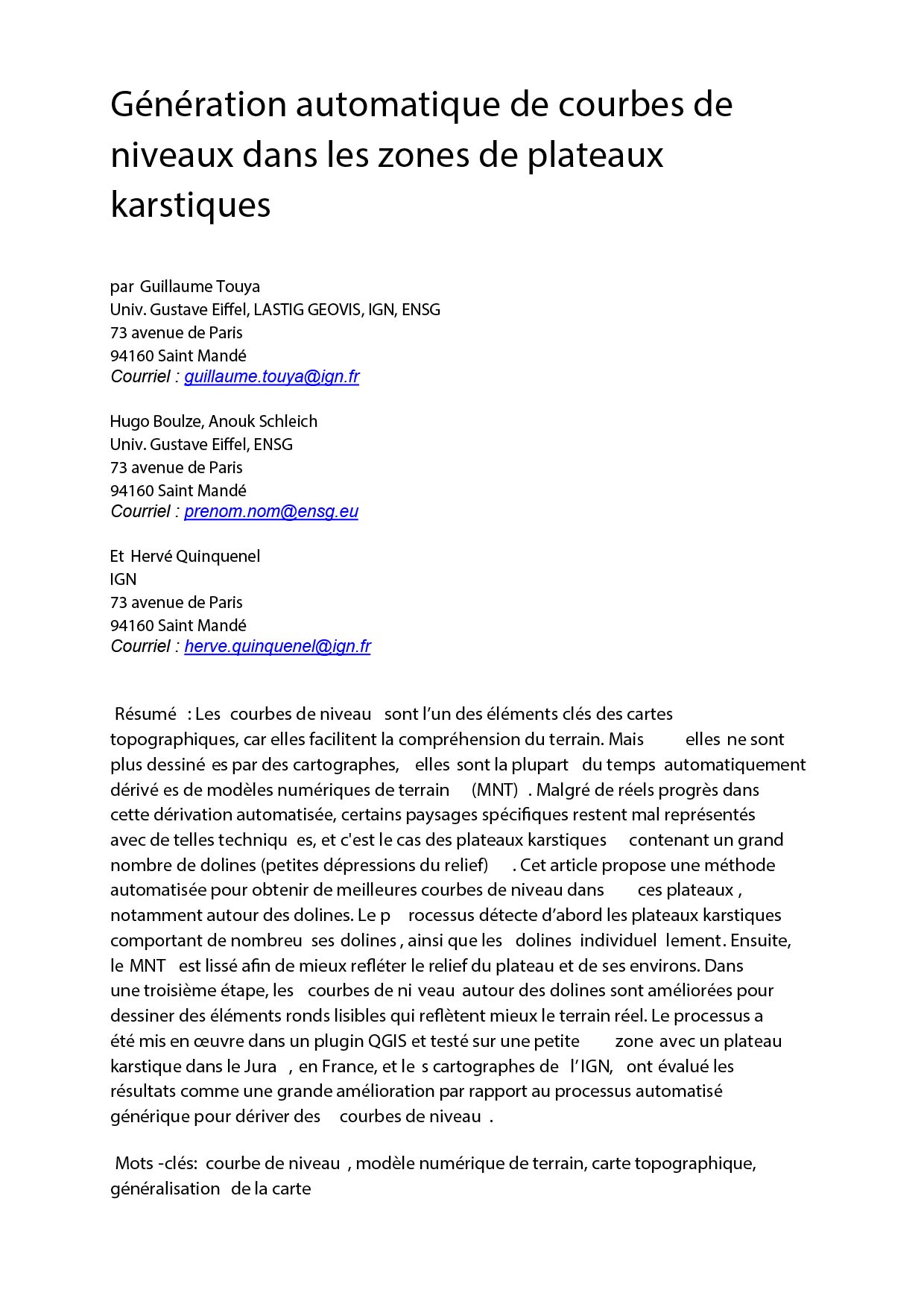 Auteur(s) Touya G. , Boulze H. , Schleich A. , Quinquenel H.