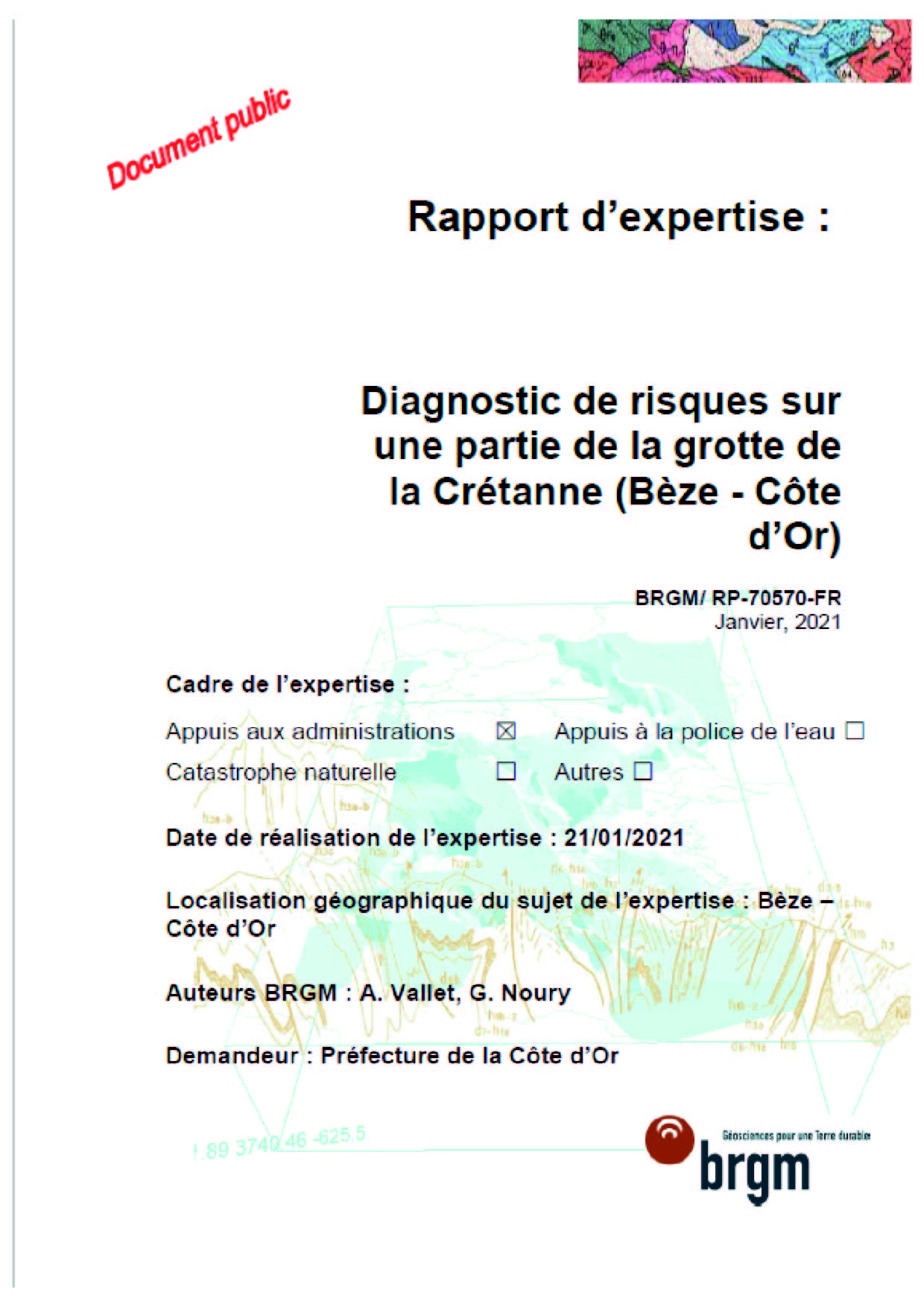 Rapport d’expertise : Diagnostic de risques sur une partie de la grotte de la Crétanne (Bèze - Côte d’Or)