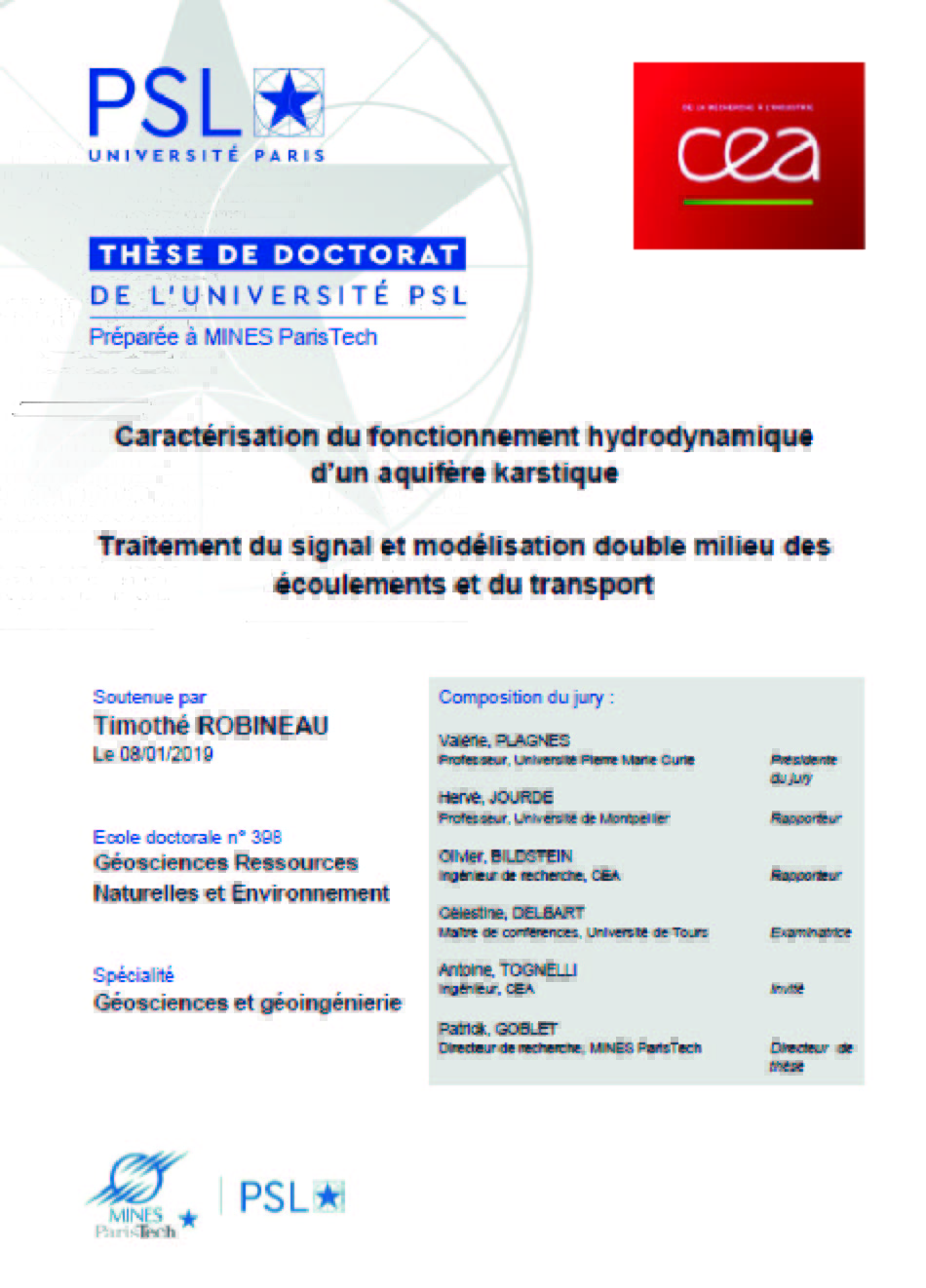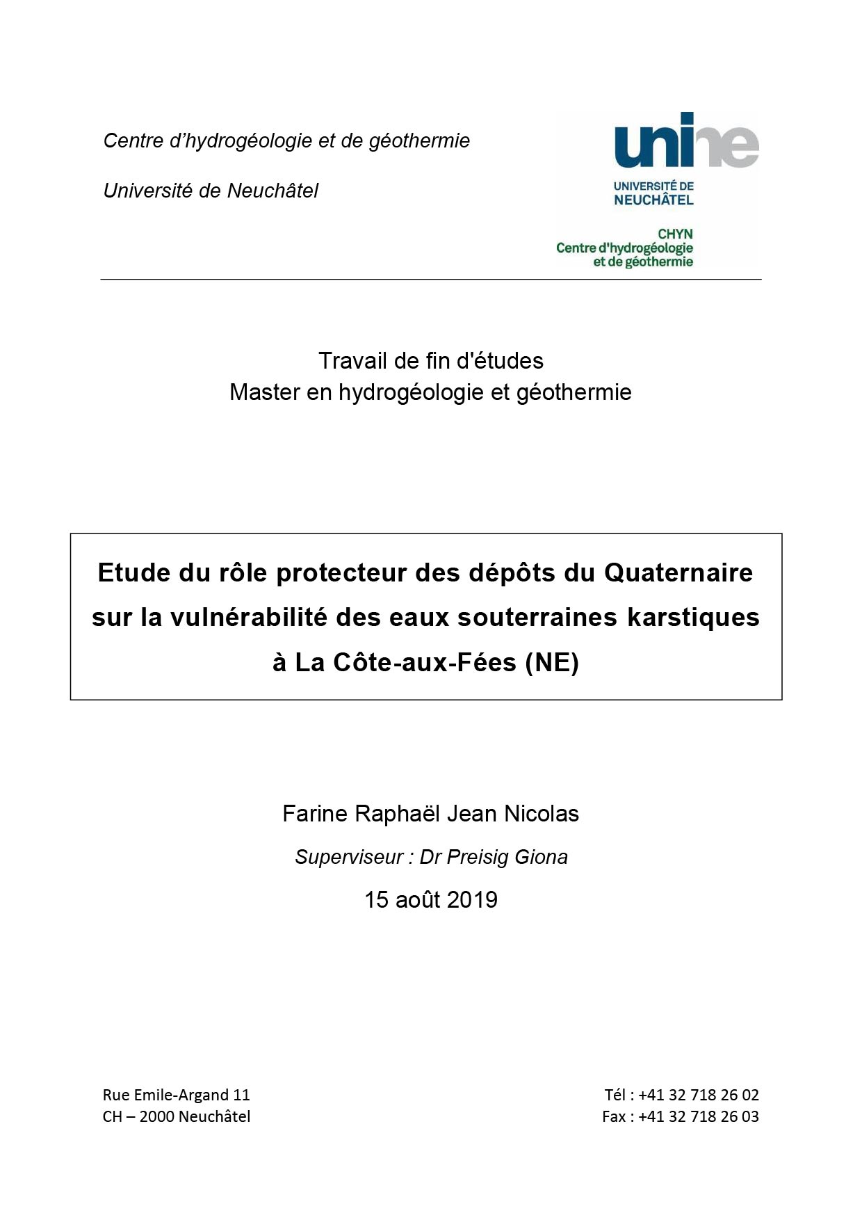 Travail de fin d'études Master en hydrogéologie et géothermie (Université de Neuchâtel, 2019)