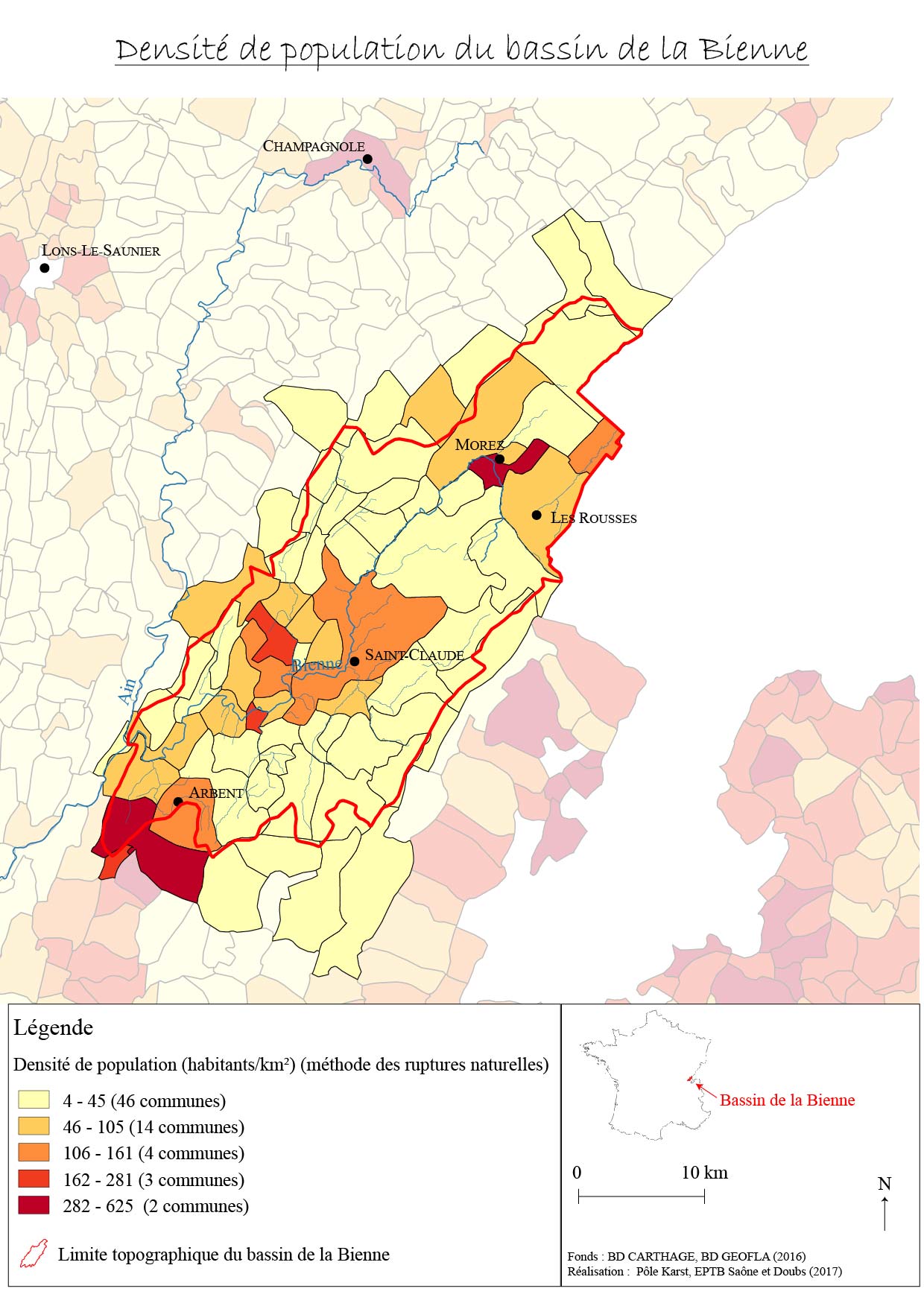 Carte de la densité de population du bassin de la Bienne