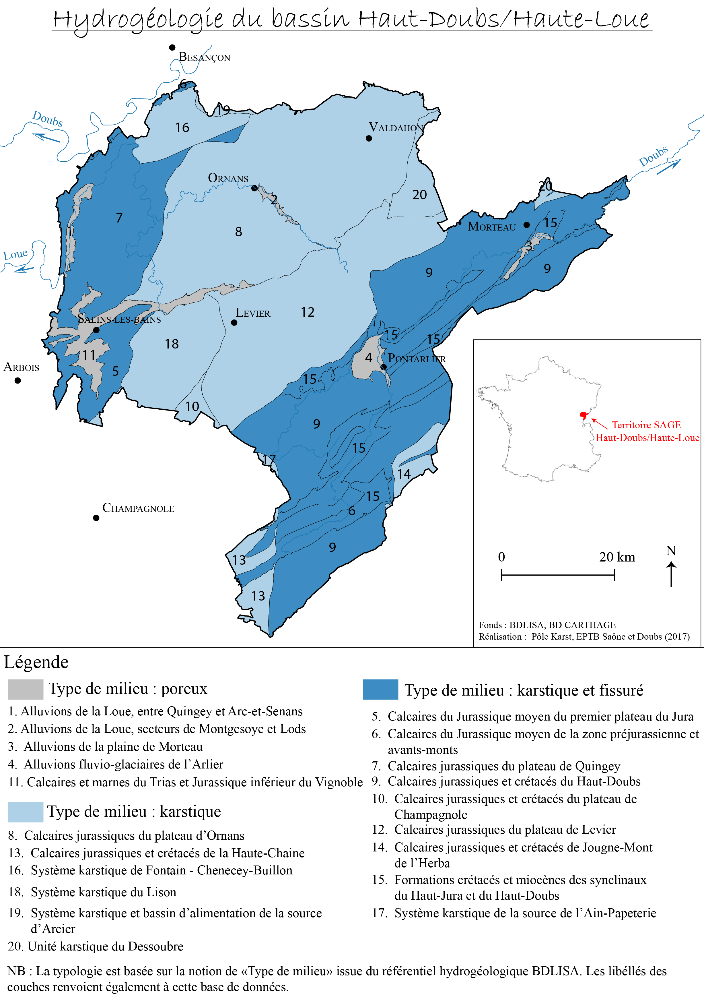 Carte de l'hydrogéologie du bassin Haut-Doubs/Haute-Loue