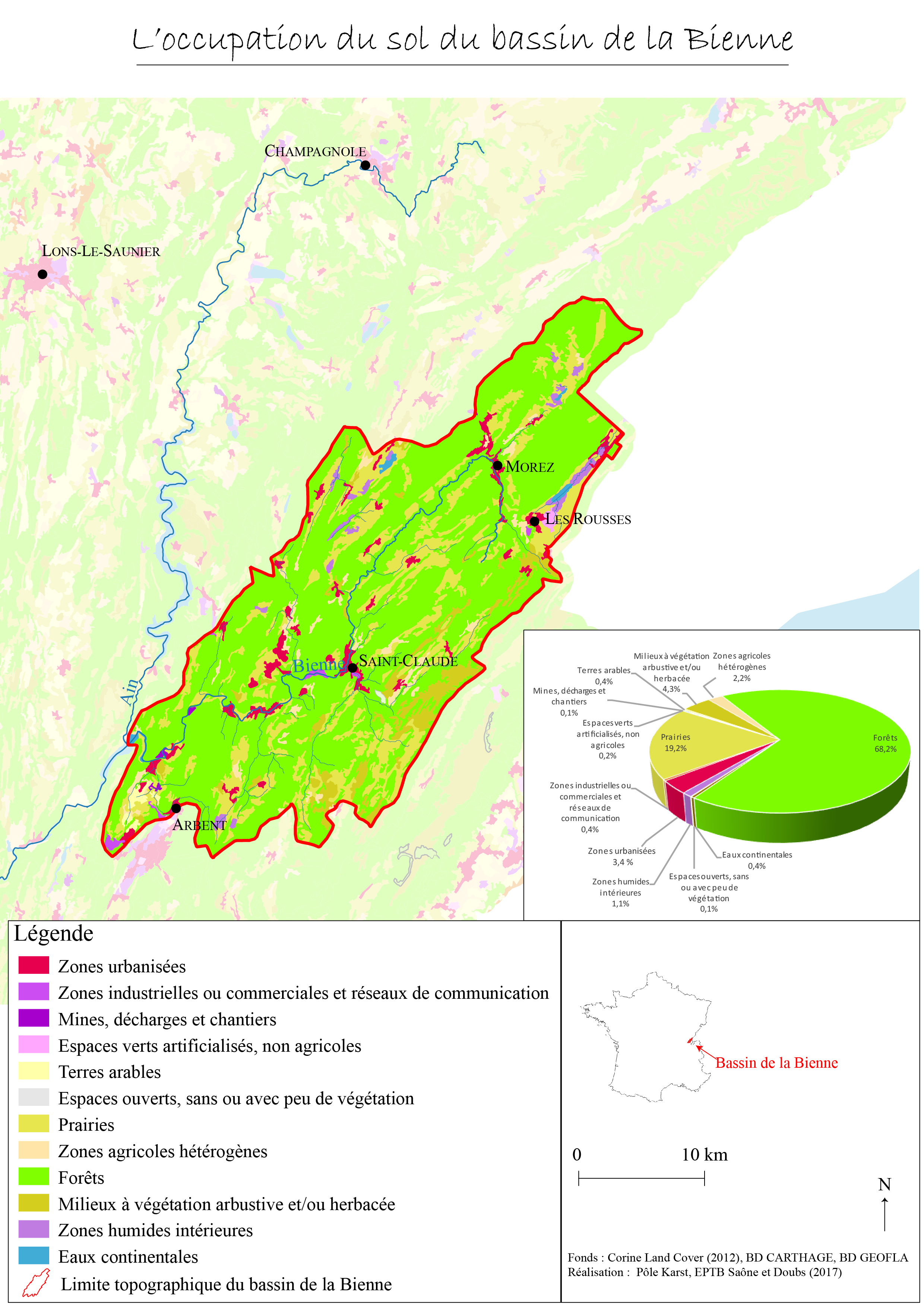 Carte de l'occupation du sol du bassin de la Bienne