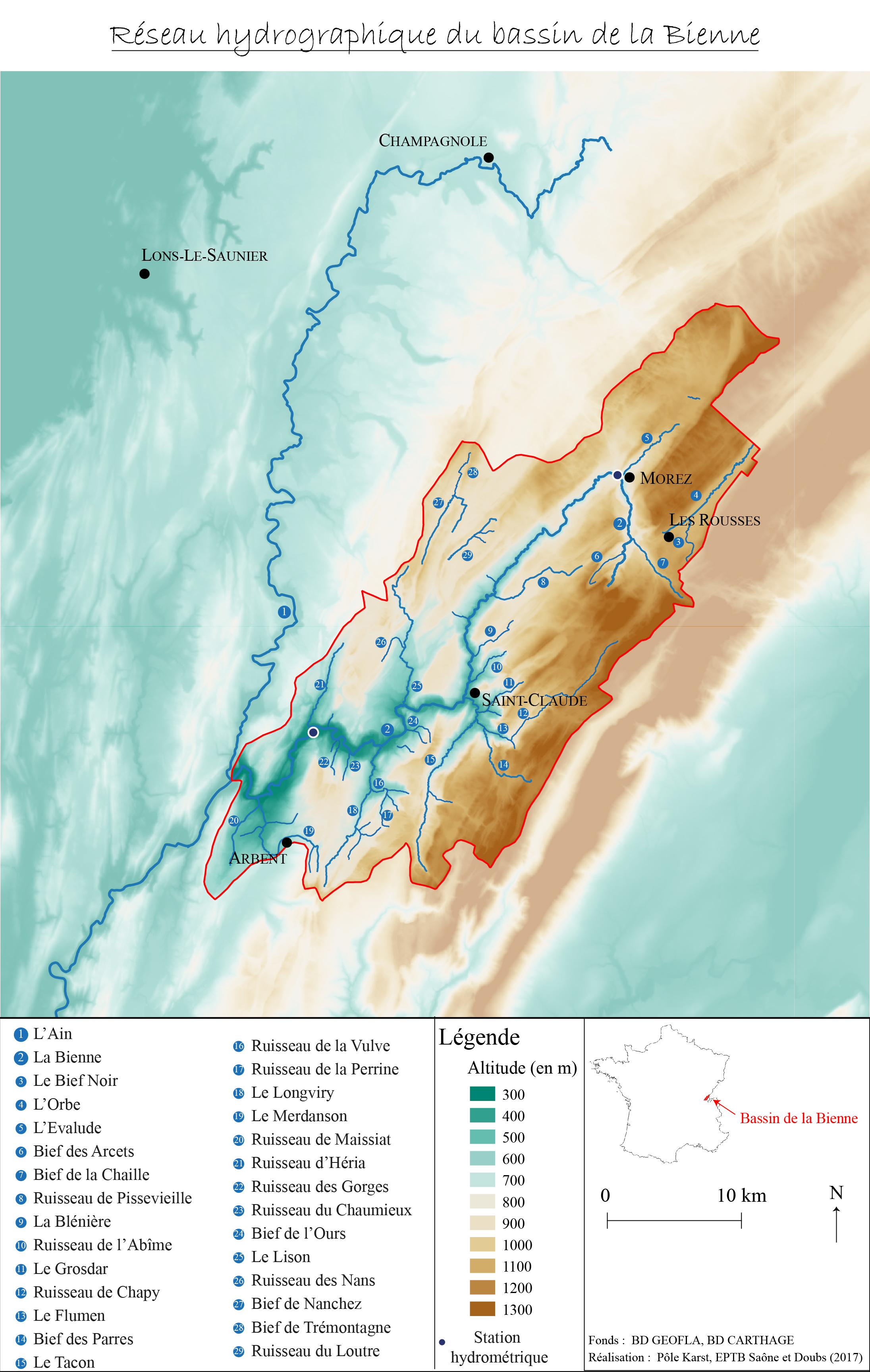 Carte du réseau hydrographique du bassin de la Bienne