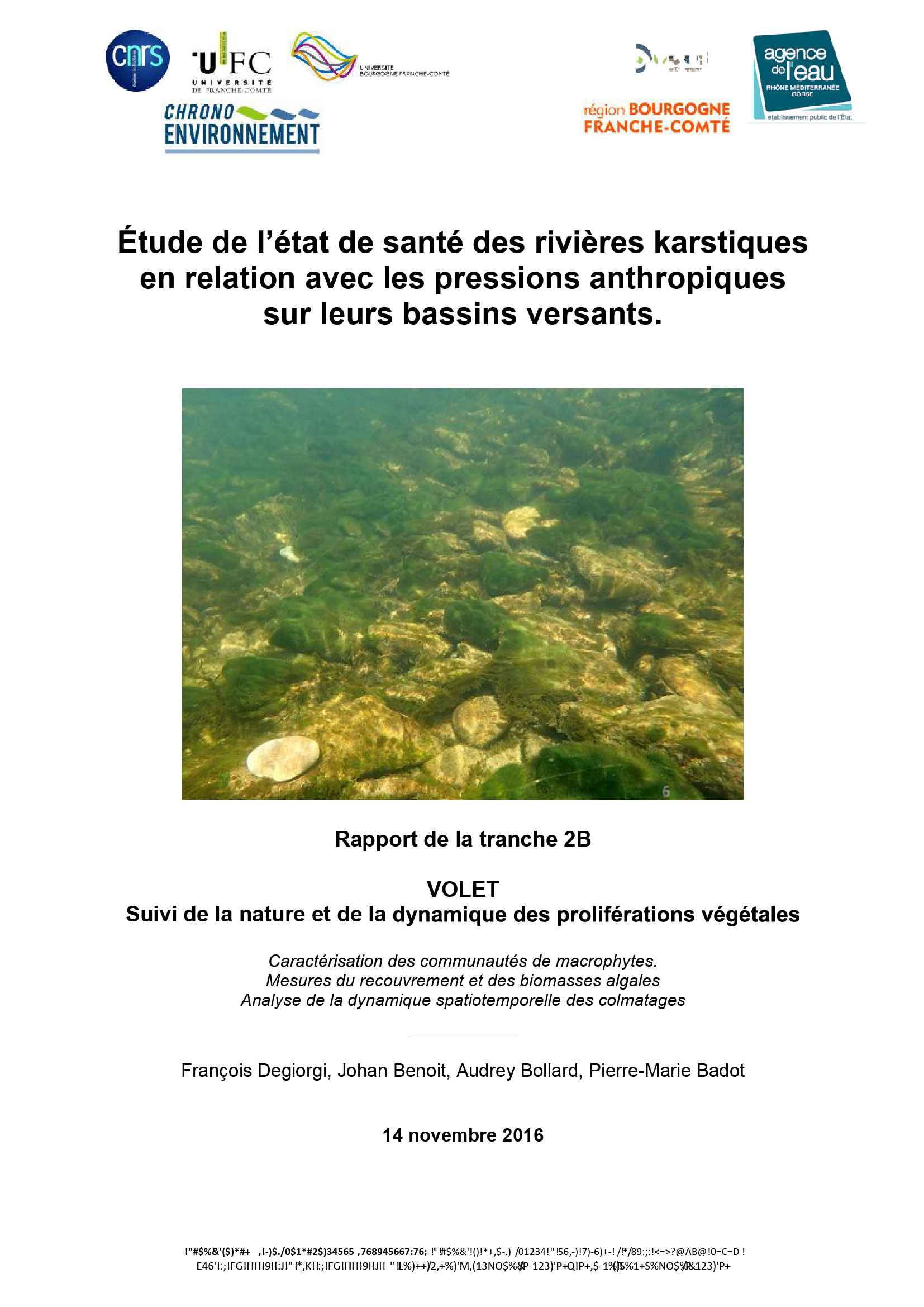 Étude de l’état de santé des rivières karstiques en relation avec les pressions anthropiques sur leurs bassins versants. Suivi de la nature et de la dynamique des proliférations végétales