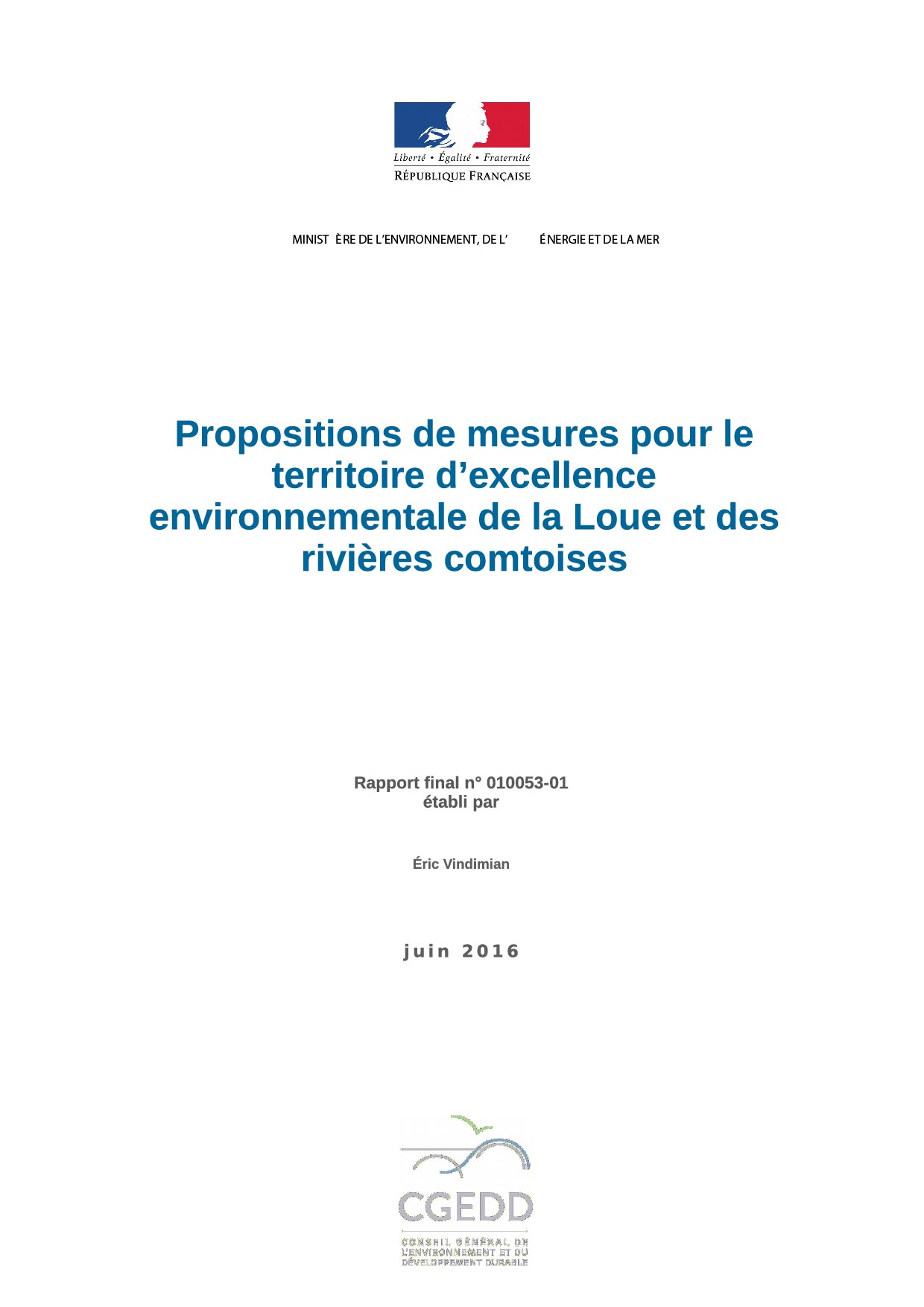 Propositions de mesures pour le territoire d’excellence environnementale de la Loue et des rivières comtoises