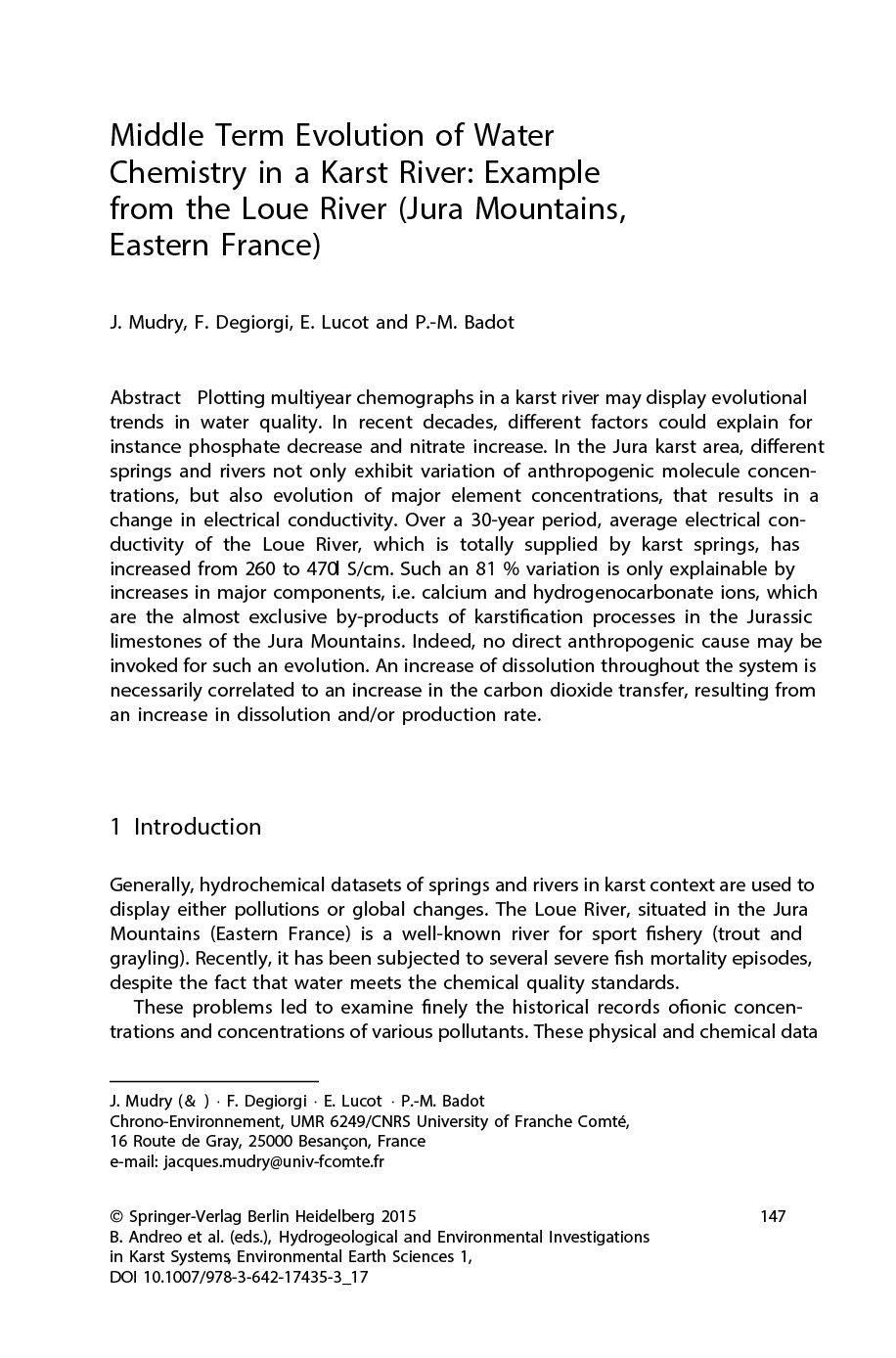 Middle Term Evolution of Water Chemistry in a Karst River: Example from the Loue River (Jura Mountains, Eastern France)