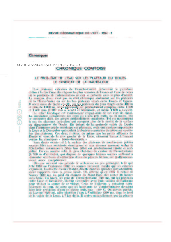 Chronique comtoise. Le problème de l'eau dans la vallée du Doubs. Le syndicat de la Haute-Loue