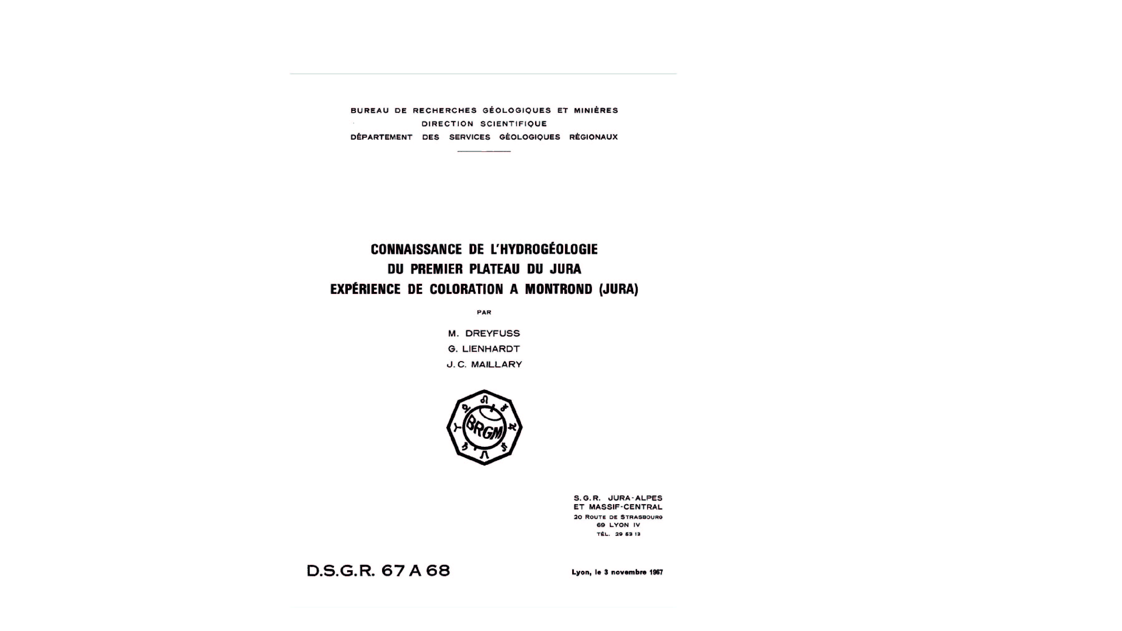 Connaissance de l'hydrogéologie du premier plateau du Jura. Expérience de coloration de Montrond (Jura)